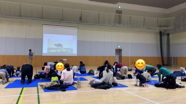 講義の後は、親子で実際に身体を動かす運動の時間を作りました。